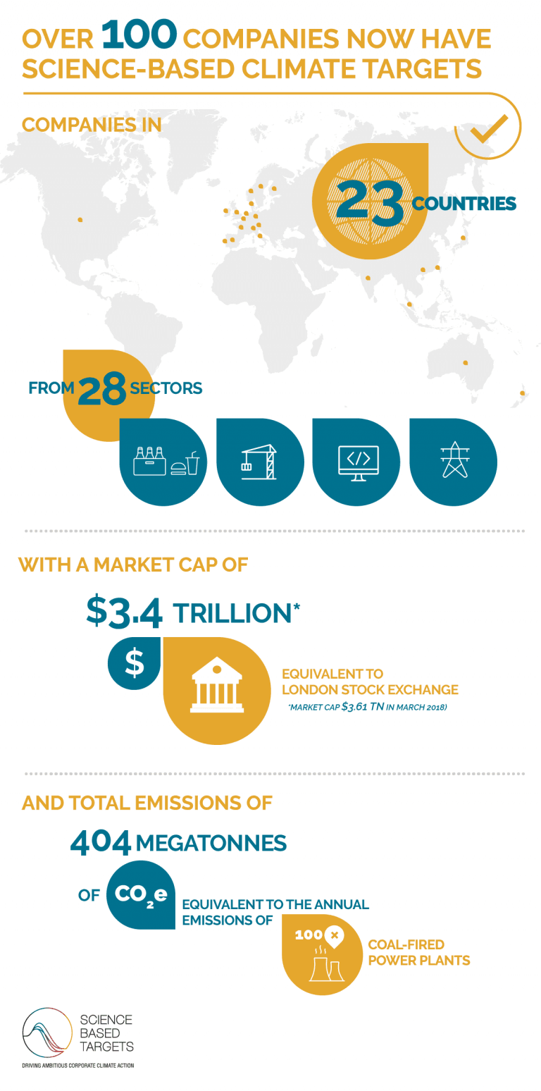 The Science Based Targets initiative is celebrating a major milestone: over 100 companies have turned their commitments into targets and are now working towards emission reductions in line with what climate science says is necessary to limit warming to below 2°C.