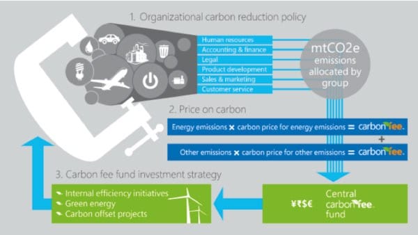 Nonetheless, precious few corporates apply such goal-setting against real-world, science-based thresholds; whether relating to carbon or other environmental and social‘planetary boundaries.’ While several organizations such as CDP , WRI and WWF are starting to make the case for increased ambition on corporate target-setting through the recently announced ‘Science Based Targets’ initiative, let’s check out a different approach which is steadily gaining ground: the use of internal carbon fees.