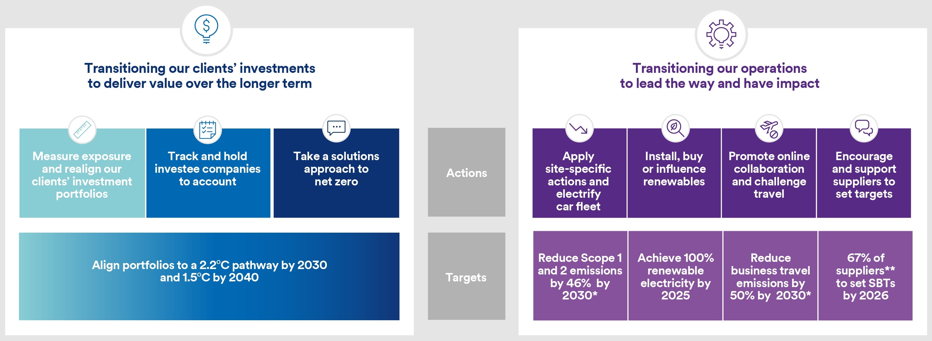 Schroders’ target accounts for operational and investment-associated emissions. For our scope 3 emissions, i.e. the investments we manage: